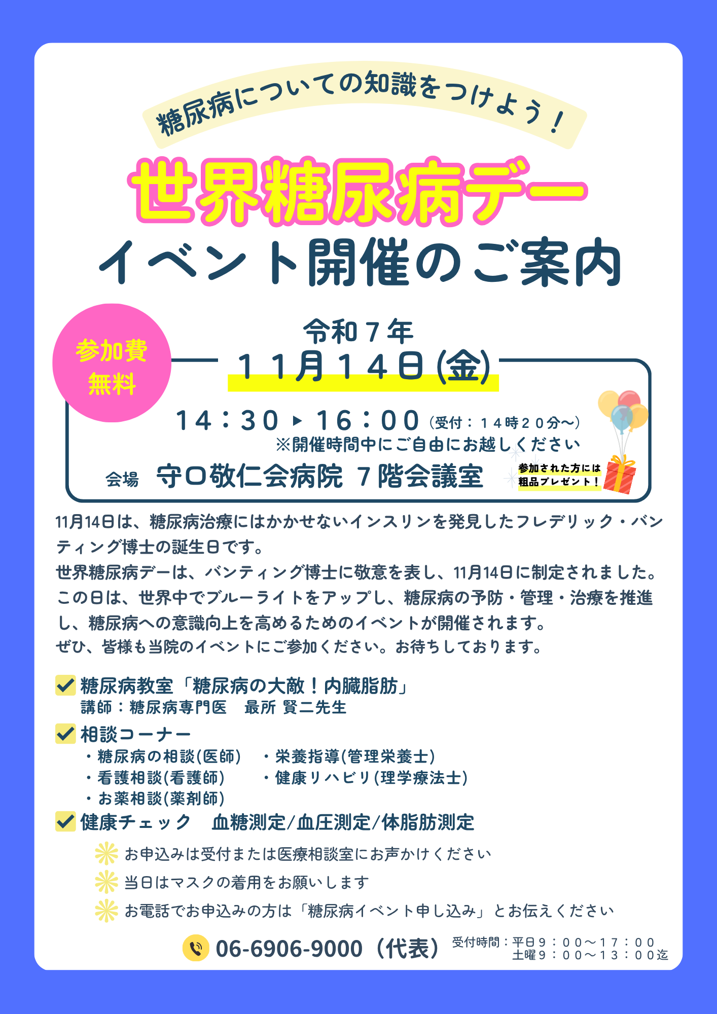 糖尿病への意識向上を高めるためのイベントが開催されます。